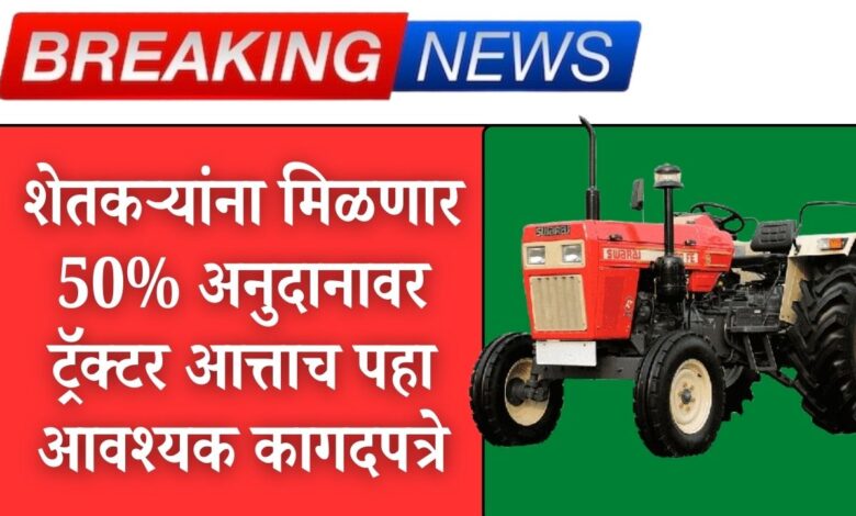 शेतकऱ्यांना मिळणार 50% अनुदानावर ट्रॅक्टर आत्ताच पहा आवश्यक कागदपत्रे